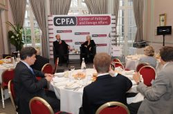 On 29 October 2009, the Centre for Political and Foreign Affairs (CPFA) in Paris hosted Baroness Pauline Neville-Jones, former UK Minister of State for Security and Counter-Terrorism in the Home Office. The event featured both a breakfast and a lunch, each moderated by Renaud Girard, offering a comprehensive exploration of security policy, counter-terrorism strategy, and the wider challenges facing Europe in an era of increasing threats.